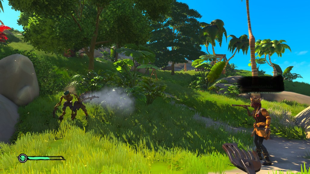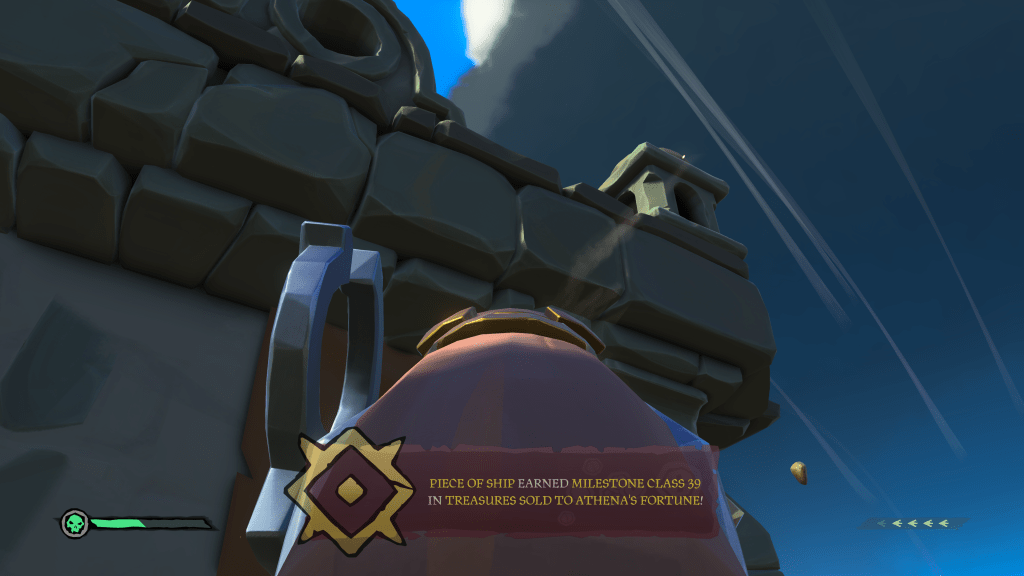 There’s been some really cool random items you can find added as well. There’s a new throwable that summons three skeletons that help you out. I haven’t had too many chances to use this, but it’s fun and so different from what we had in the games previously. There’s also the Horn of Fair Winds, a conch shell that you can blow a large gust of air out of. This has a surprising amount of uses. You can use it to slow a fall down. You can blow someone off your boat. You can propel yourself through the water. You can blow directly into the sails of your ship to give it a big speed boost. I’ve only stumbled onto it a couple times, but it’s great. I’m always super excited to see it.