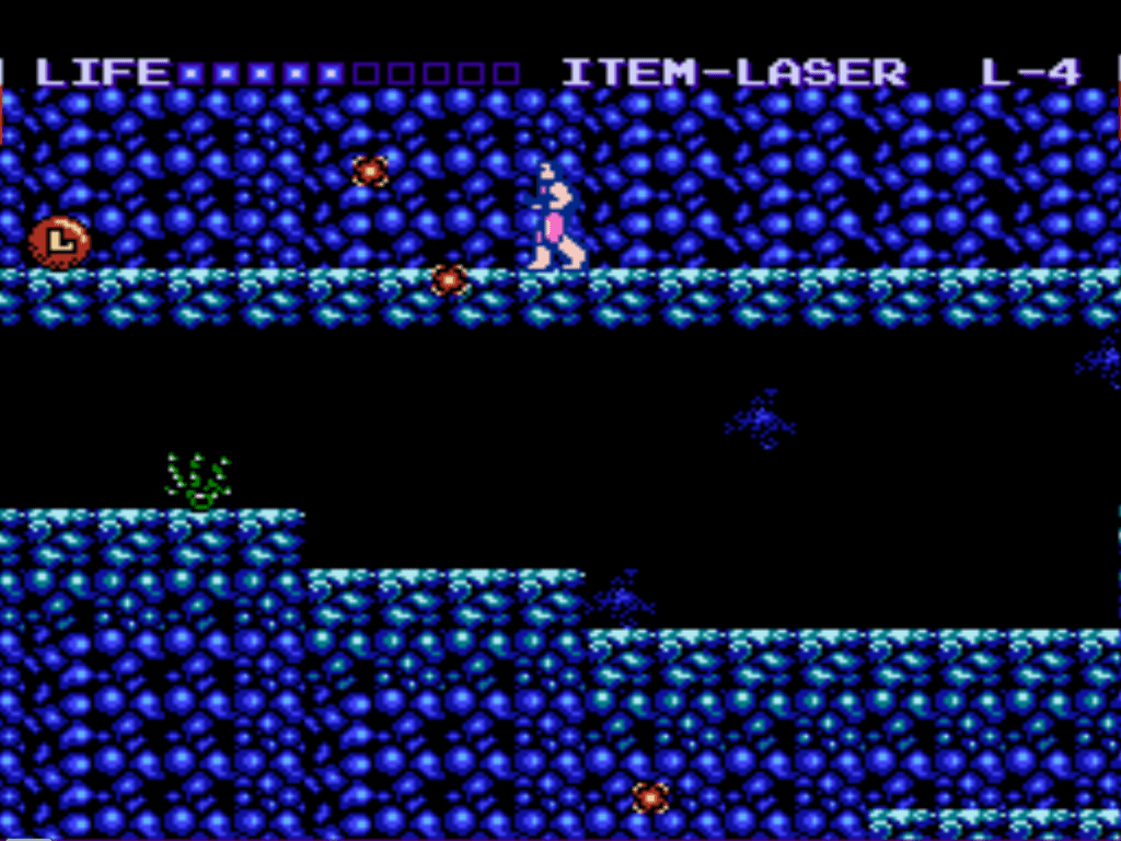 But beyond the strangeness of the adaptation, is the game itself any good? Honestly, it’s not that bad. It’s a perfectly serviceable platformer. The idea of Arnold jumping around the jungle is about as weird as all the extra aliens, but it plays just fine. You start each level with just your bare hands, but you can find weapons scattered around. In the very first level, there’s a machine gun hanging from the tree to the left which makes quick work of everything you come across. There’s also grenades, which function like you’d expect, and a laser. The laser can destroy certain blocks and is also the only weapon capable of hurting the Predator.