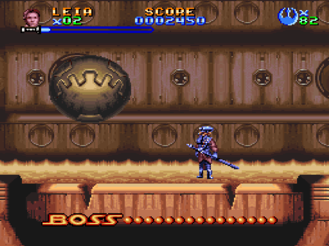 One of the early examples of it being too difficult is the boss of the first platformer level. Remember that robot eyeball thing that checks out C-3PO and R2D2 before being let into Jabba’s palace at the beginning of the movie? Well, here it’s gigantic and attacks the player by electrocuting them. I didn’t even get close to beating this thing as either Luke or Leia. Thankfully, Chewbacca can keep his distance and just keep shooting, and that’s the only way I was able to win.
